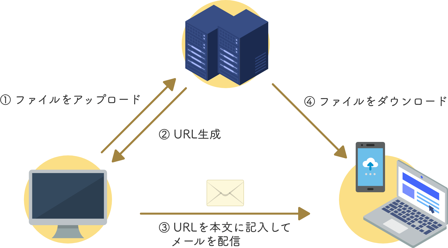 生成したダウンロード用のURLをメールに記載し、利用者がクリックすることでファイルをダウンロードできます。
